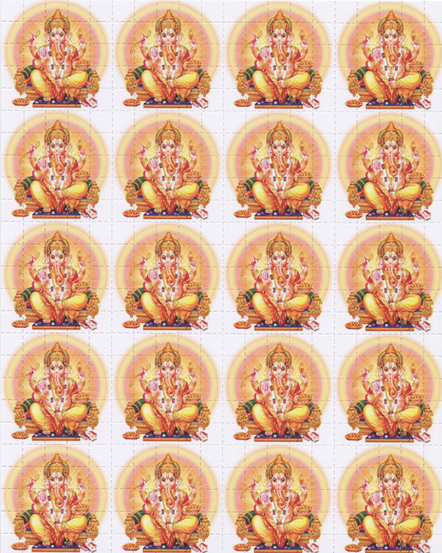 This blotter art piece is 7.5" x 7.5" inches and perforated into 900 "tabs" in the traditional street acid format. It contains no psychoactive chemicals. Art is by William James Taylor Jr and contains a Sanskrit prayer |
