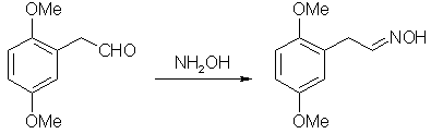 The solid is washed with 2x15ml of methanol, and subsequently it is added to a mixture consisting of 50ml water, 50ml methylene chloride and 14g KH2PO4, while keeping the reaction mixture under stirring for two hours at room temp. The two layers are then separated, the aqueous phase is extracted twice with 25ml methylene chloride, then discarded, while the organic layers are collected and washed with 25ml of dH2O. 2,5-Dimethoxyphenylacetaldoxime
