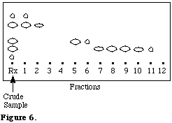 The time required to elute the desired components from the column is generally so fast (5-10 min) that we have abandoned automatic fraction collectors in favor of a simple rack holding test tubes. Small fractions are typically collected early in the elution with larger ones being collected toward the end of the chromatography. Separated components are conveniently detected by spotting ~5 mL of each fraction along the long side of 7x2.5 cm TLC plate and then by developing them sideways. Heavier spotting may be required for small samples or highly retentive components. A typical separation is shown in Figure 6.