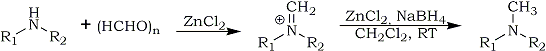 The combination of zinc chloride and sodium borohydride in dichloromethane is used to effect reductive aminations of formaldehyde with a variety of primary and secondary amines containing potentially acid-sensitive functional groups in good to excellent yields.