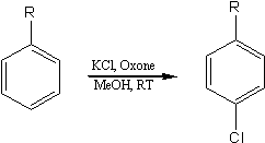 Para-Chlorination of Aromatics using KCl/Oxone[ Back to the Chemistry Archive ]In this communication we report a new method for the para selective (regioselective) oxychlorination of aromatic compounds using commercially available Oxone® as an oxidant and KCl as a chlorine source. We observed smooth chlorinations in acetonitrile without any additional catalyst.