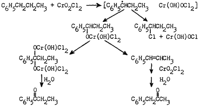 Chromyl Chloride | Propyl- benzene | Propyl- benzene | α-Chloro- propyl- benzene | Benzyl Methyl Ketone | Propio- phenone |