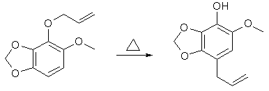 10g 6-Methoxy-2,3-Methylenedioxy-4-allylphenol was methylated as described above, and the product was obtained as a colorless liquid, yield 10g. References[1] US Pat 4,876,277 |