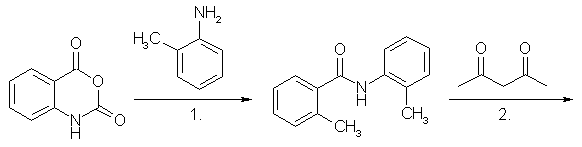 1. Isatoic anhydride condenses with o-Toluidine to give 2,2'-dimethylbenzanilide
