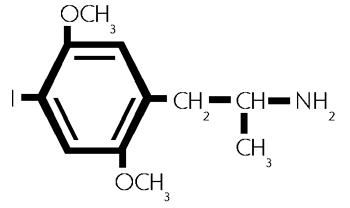 Wieder, wie mit jedem anderen halluzinogenen Amphetaminanalog, das ein chirales Zentrum hat, und in der individuellen optischen Isomerenform untersucht wurde, ist es das 'R' Isomer, dass potenter ist. Und wieder zeigt das andere Isomer, das 'S' Isomer, immer noch einige Aktivitaet. Das gleiche war wahr mit DOB, und DOM, und MDA. Die einzige Ausnahme war MDMA, aber dies ist auch mehr ein Stimulanz, und es gibt praktisch keine halluzinogene Komponente in seiner Wirkung. Studien mit Ratten, wo es gibt ein Mass der Unterscheidung von einem Teststoff von einer Salzloesung, haben gezeigt, dass das 'R' Isomer rund die zweifache Potenz des 'S' Isomers besitzt. Dass das 'R' potenter ist, ist sicher, aber die obigen Berichte wuerden nahelegen, dass der Faktor naeher am Vierfachen als am zweifachen liegt. Eine Zahl an Studien mit DOI in Tierversuchen haben gezeigt, dass es eine extrem hohe Bindungskapazitaet besitzt, zu dem, was der 5-HT2 Receptor genannt wird. Serotonin ist ein wesentlicher Neurotransmitter im Gehirn, und ist sehr stark in die Wirkung der Phenethylaminhalluzinogene verwickelt. Der Platz wo es wirkt, auf der molekularen Ebene, wird sein Rezeptorsitz genannt. Als ein Ergebnis der gemeinsamen Studien von medizinischen Chemikern, die sehr nahe zusammenarbeiteten mit Neuropharmakologen, ist eine Zahl von Verbingungen aufgetaucht, die mit diesem Plaetzen interagieren. Aber dieser eine interagiert mit diesen Platz und nicht mit diesem, und jener interagiert mit jenem Platz und nicht mit diesem. So, es hat sich eine Sammlung von Unterabteilungen und Unter-Unterabteilunge von Receptorsitzen entwickelt, alle verbunden mit Serotonin, aber jede definiert durch eine besondere Substanz, die am engsten mit diesem interagiert.