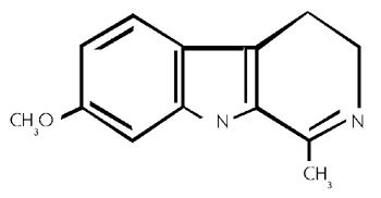 Die Substanz ist ein beta-Karbolin-Alkaloid, dass z.Bsp. aus den Samen der Pflanze Peganum harmala (der Steppenraute) gewonnen wird, denn diese Pflanze enthaelt das staerkste natuerliche Vorkommen von beta-Karbolinalkaloiden. Es ist nahe verwandt mit dem Alkaloid Harmin, dass in der selben Pflanze vorkommt und ebenfalls ein beta-Karbolin-Alkaloid ist. Beide Alkaloide werden und wurden haeufig in der Literatur verwechselt. (eigen)