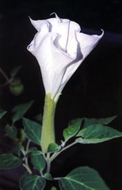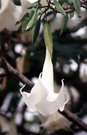 nodding below the horizontal. The calyx nods to horizontal or below when the corolla first emerges. Genus Brugmansia