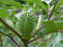 either with rigid spines or no spines. Corolla limb mostly rounded or pentagonal with five primary teeth. Section stramonium